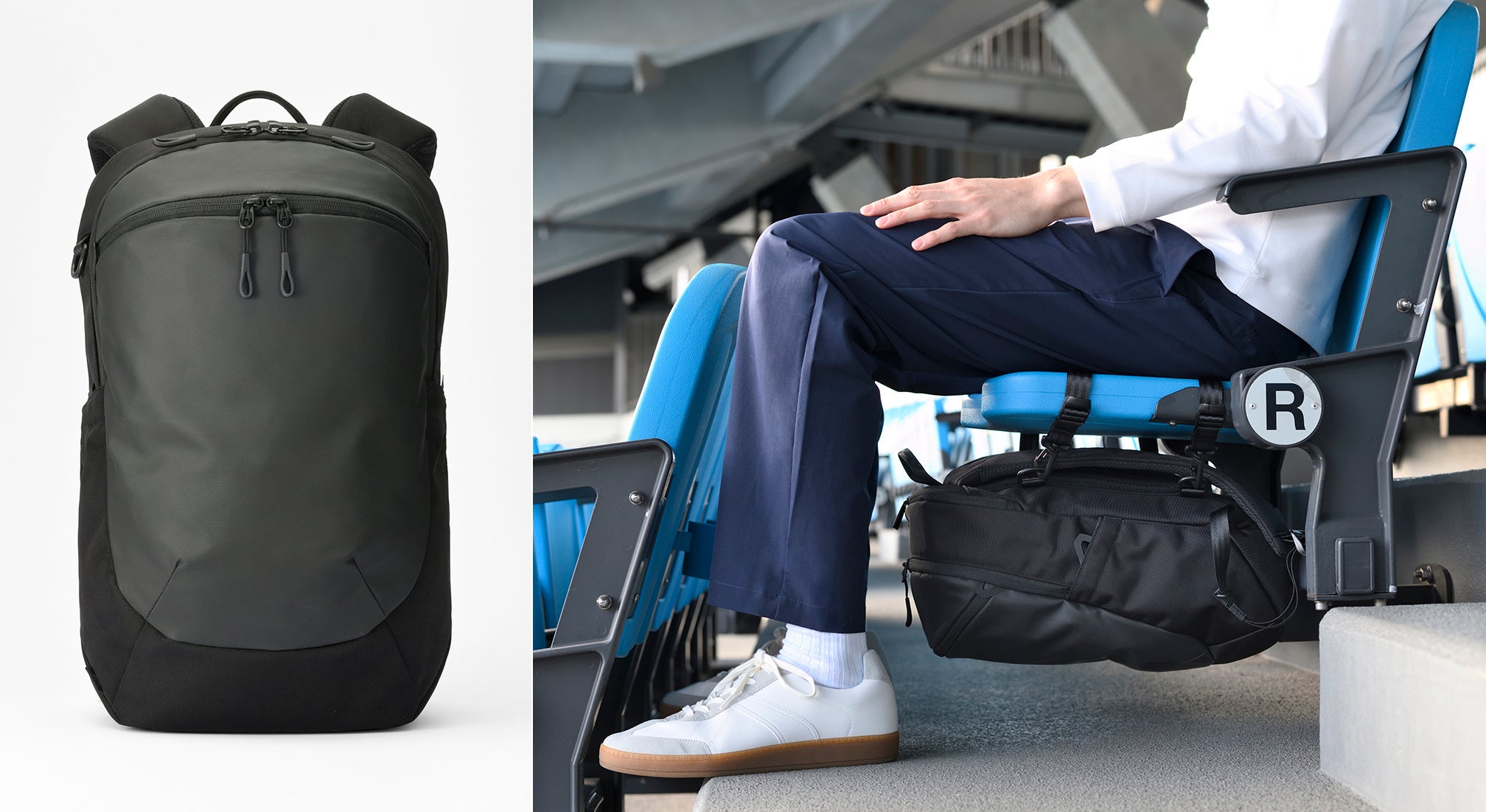 「足下に置かない」ことで、邪魔にならず、バッグも汚さない。スタジアム観戦の不便さから生まれた、吊るして使う新発想バッグ「ace. エブスタ」